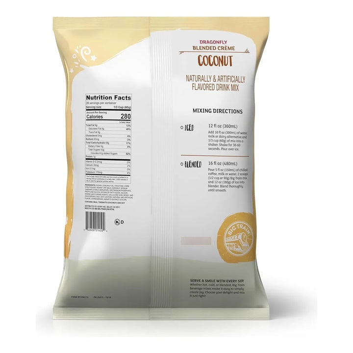 Big Train Dragonfly Mezcla Bebida Crema Coco 3.5 Lb Sabor Cafeteria Instantaneo