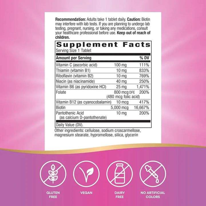 Biotin Forte Nature's Way Salud Cabello Piel 60 Tabletas Vegano