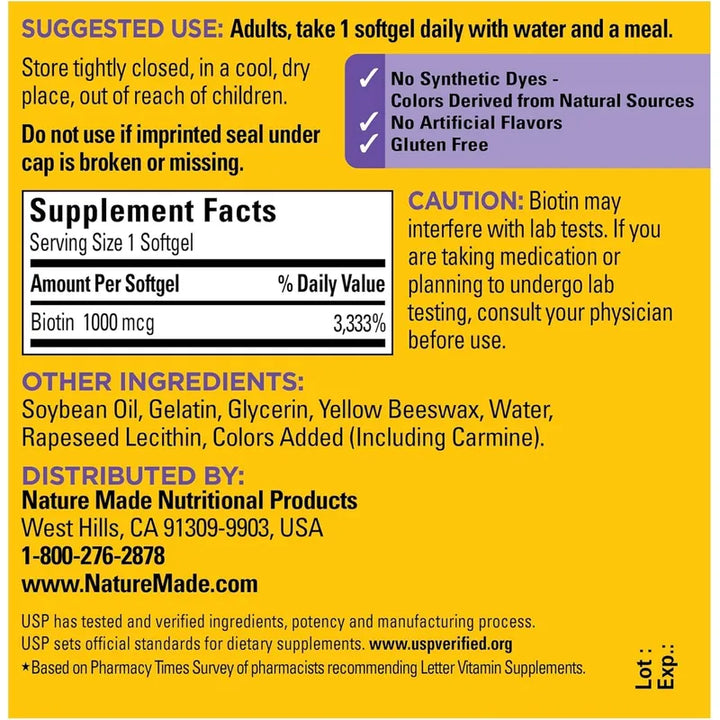 Biotina 1000 Mcg Cápsulas De Gel Nature Made 120 Unidades