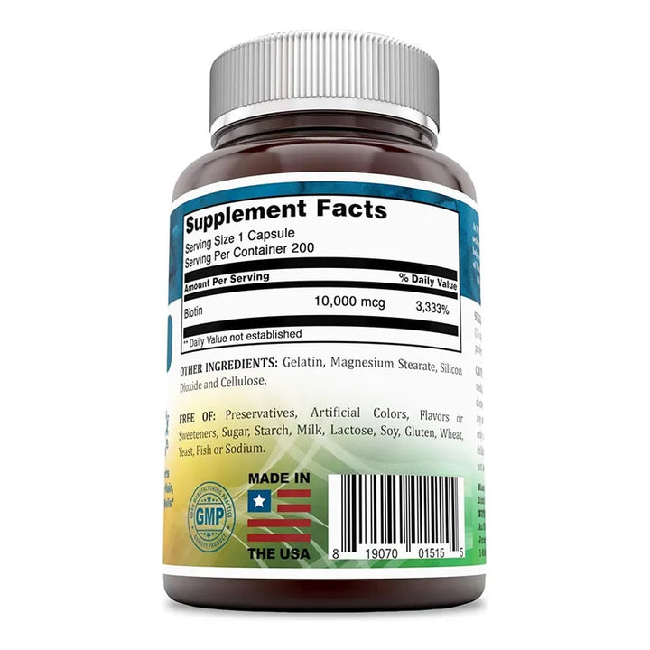 Biotina 10000 Mcg 200 Capsulas Para Cabello Piel Y Uñas