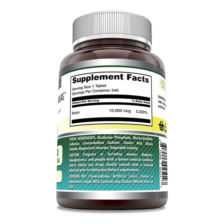Biotina 10000 Mcg 240 Tabletas Suplemento Saludable Simple