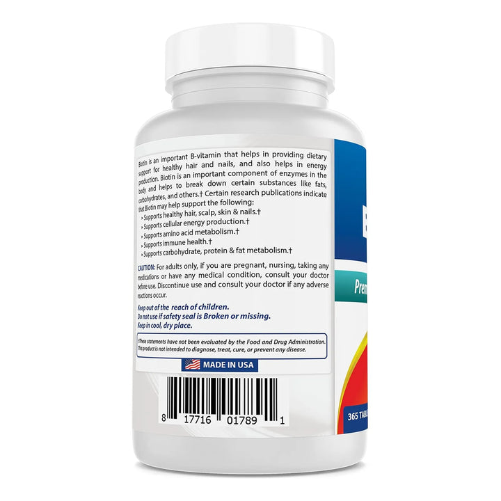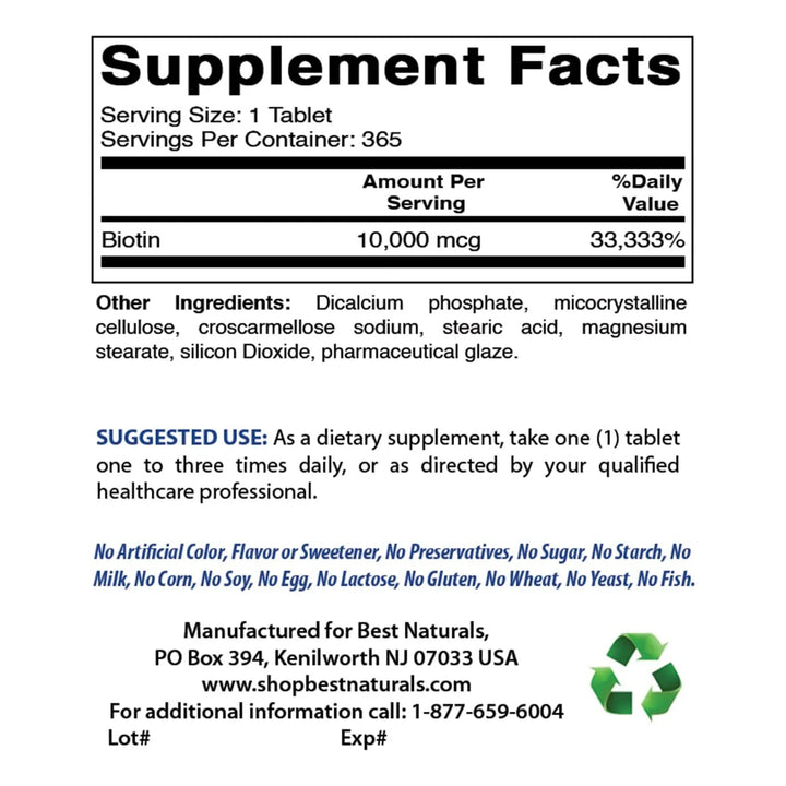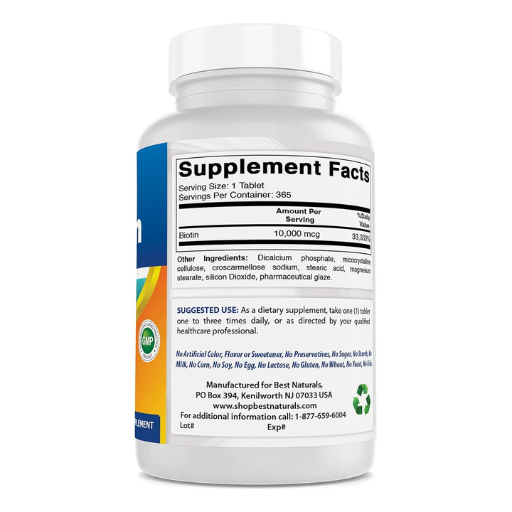 Biotina 10000 Mcg 365 Tabletas Cabello Piel Uñas Best Naturals