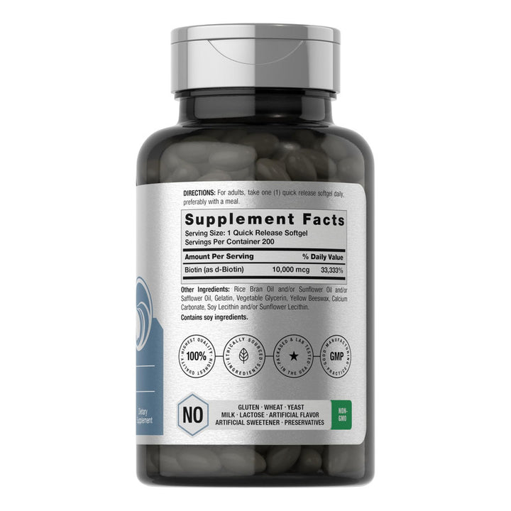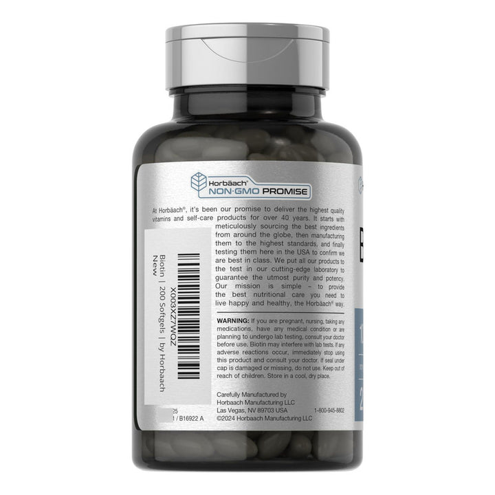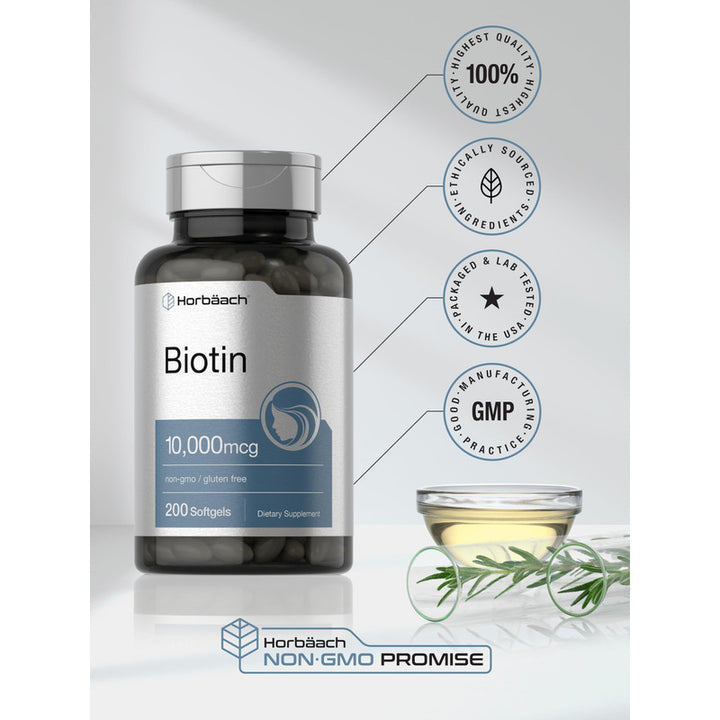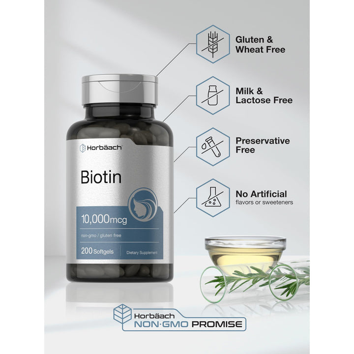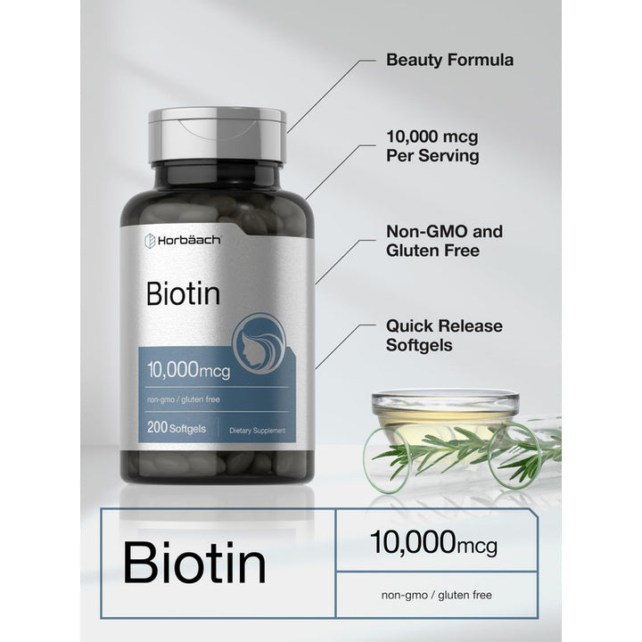 Biotina 10000 Mcg Horbaach Suplemento Vitamina B7 200 Cápsulas Blandas Cabello Y Belleza