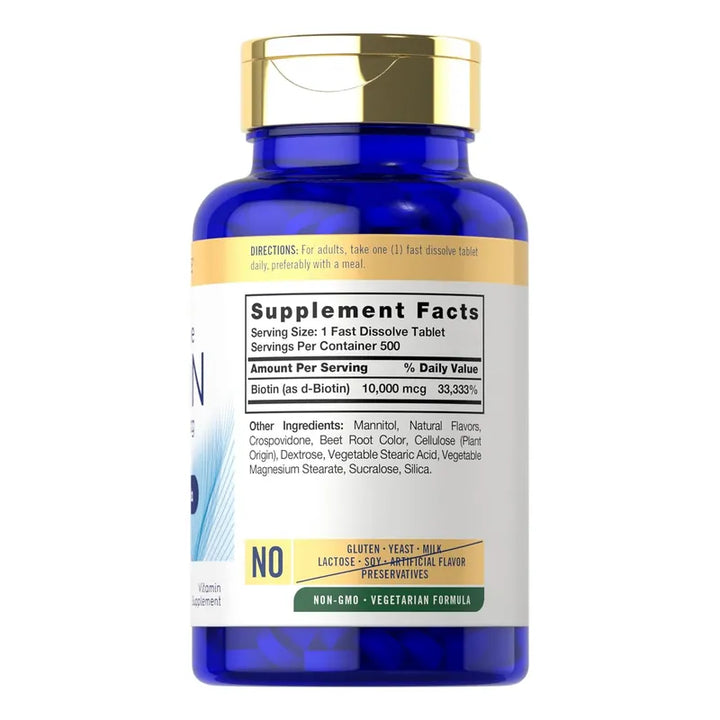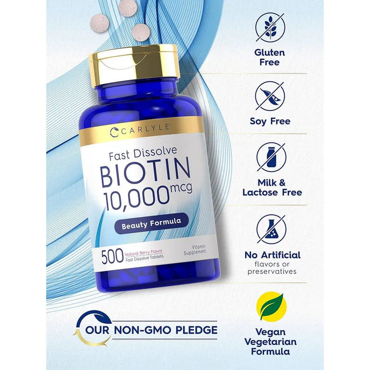 Biotina 10000mcg 500 Tabletas Disolución Rápida Carlyle