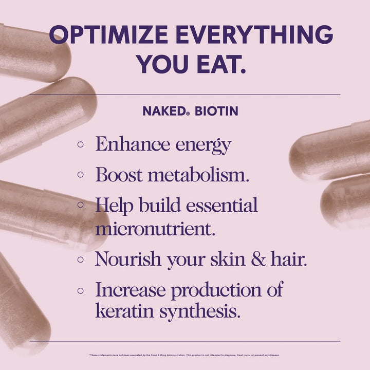 ¿Cansado de probar productos que prometen pero no cumplen? Nuestra fórmula vegana, libre de gluten y transgénicos, está diseñada para ofrecer resultados reales. Cada cápsula contiene 10,000mcg de biotina pura, la dosis óptima para combatir deficiencias y revitalizar tu cuerpo. No es solo un suplemento, es una inversión en tu bienestar diario. ¿Qué sentirías al mirarte al espejo y amar lo que ves?