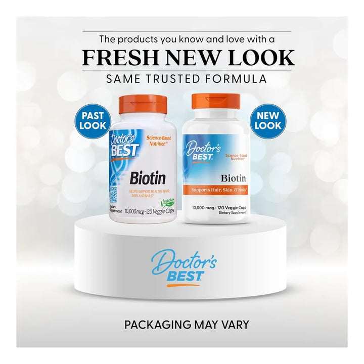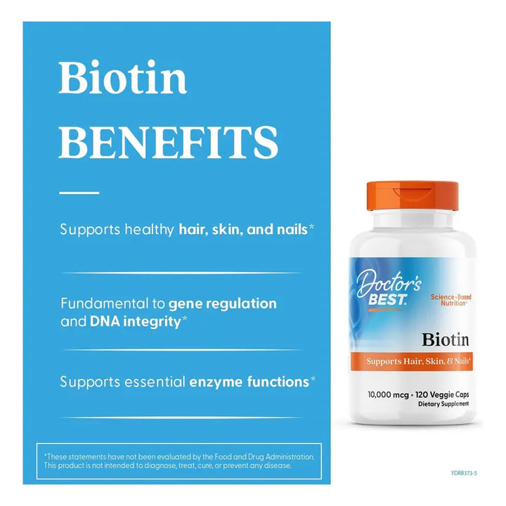 Lidiar con cabello quebradizo, uñas débiles y piel opaca puede ser frustrante. Con nuestra biotina, puedes fortalecer tu cabello, darle un brillo radiante a tu piel y mejorar la resistencia de tus uñas. Las vitaminas de Doctor's Best ofrecen una solución naturalmente efectiva para enfrentar estos desafíos cotidianos.