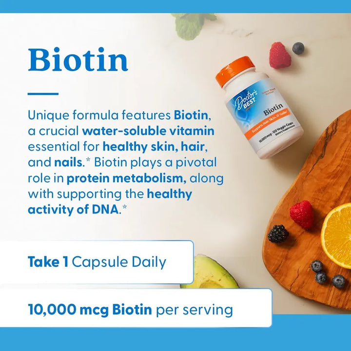 ¿Te gustaría revitalizar tu imagen y sentir un cambio positivo en tu bienestar? La Biotina de Doctor's Best es tu aliada perfecta para lograrlo. Experimenta una transformación desde la raíz y descubre lo fácil que es sentirse saludable y lleno de energía. No esperes más para conocer los increíbles beneficios de esta potente vitamina del complejo B.