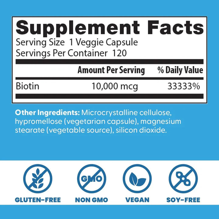 Este suplemento es más que un simple producto, es una inversión para tu salud a largo plazo. Ya sea porque estás planeando aumentar tu energía o centrando en el cuidado personal, la biotina te cubre en todos los aspectos. No tendrás que preocuparte por la calidad del producto, ya que cada cápsula está formulada meticulosamente para proporcionar solo lo mejor.