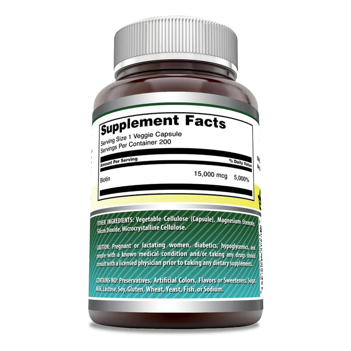 Biotina 15000 Mcg Cabello Piel Uñas Saludables 200 Capsulas Ee Uu