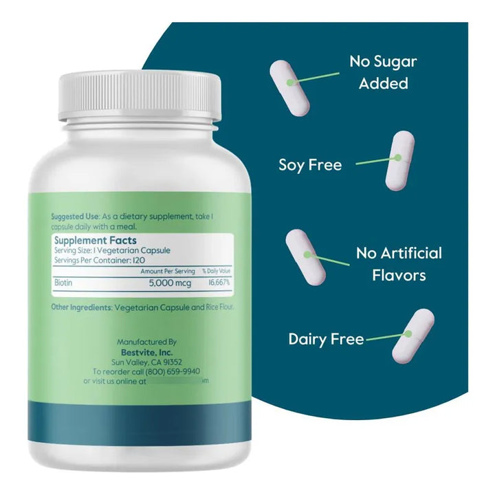 Tu belleza natural merece lo mejor, y con nuestras cápsulas de Biotina de 5000 mcg, experimenta la transformación desde el interior hacia el exterior.