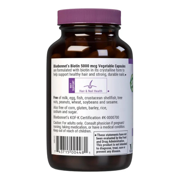 ¿Te levantas cada mañana viendo ahora menos cabello en tu almohada? ¿Sientes que tu cabello ha perdido fuerza y brillo? No te preocupes, porque las Cápsulas Vegetales de Biotina 5000 mcg de Bluebonnet Nutrition están aquí para solucionar tus problemas capilares de una manera natural y efectiva.