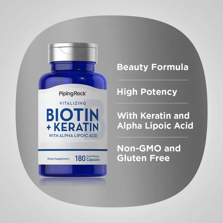 Nuestra avanzada fórmula de belleza no solo resalta por su contenido de biotina. Al agregar queratina y ácido alfa lipoico, hemos creado un suplemento integral que aborda múltiples aspectos del cuidado personal. No permitas que la fragilidad y la falta de brillo te detengan.