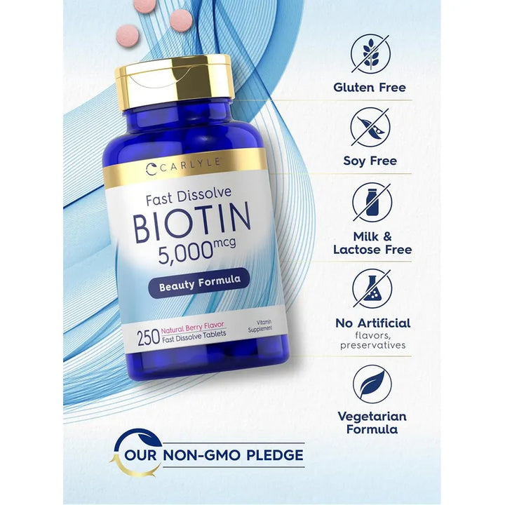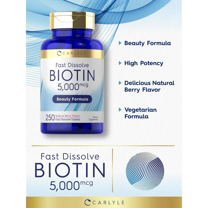 Biotina 5000mcg Carlyle 250 Tabletas Rapida Disolucion Vegetariano