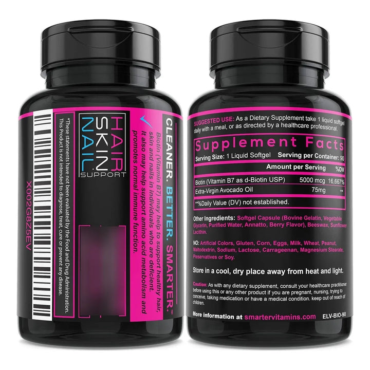 Biotina 5000mcg En Aceite De Aguacate 180 Capsulas Cabello Piel Uñas SmarterVitamins