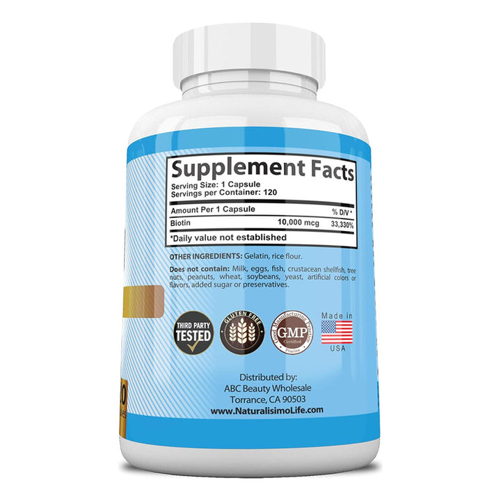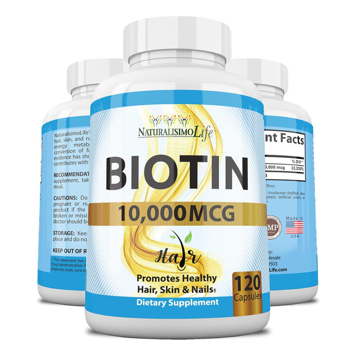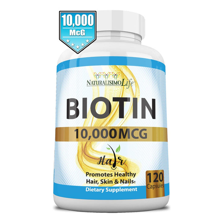 La Biotina de 10,000 mcg de NaturalisimoLife es un suplemento altamente concentrado que actúa reforzando las raíces del cabello, cicatrizando la piel y fortificando las uñas. Su potencia transforma la conversión de alimentos en energía, asegurando eficacia y resultados. 🌿