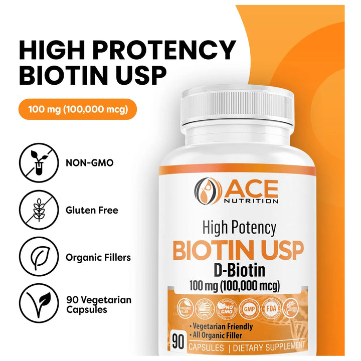 Mientras otros ofrecen dosis bajas que apenas logran un efecto, nuestra fórmula USP D-Biotina garantiza la máxima pureza y absorción. Cada frasco contiene 100mg de biotina de grado farmacéutico, libre de rellenos innecesarios y elaborado con celulosa y harina de arroz orgánica. Es la elección inteligente para quienes exigen calidad y resultados sin compromisos.