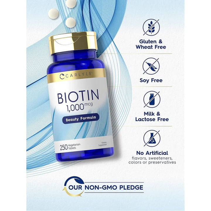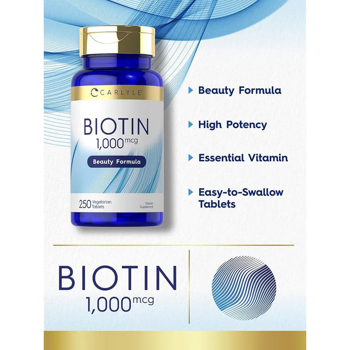 ¿Cansado de productos que no cumplen lo prometido? Este suplemento de 1,000 mcg de biotina por tableta garantiza proporcionar los resultados que buscas. La calidad de laboratorio de Carlyle asegura que estás eligiendo un producto confiable, eficaz y seguro para tu salud.