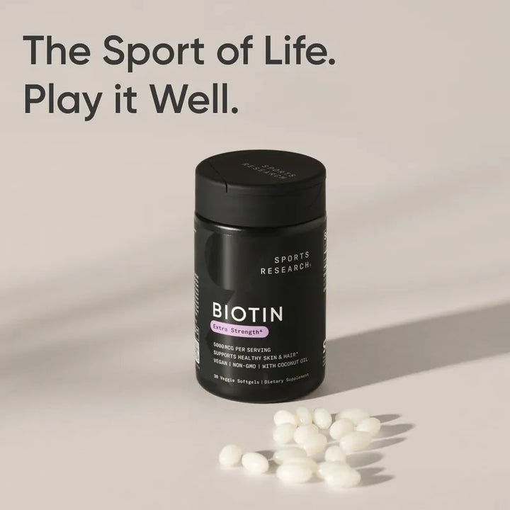 En Sports Research, nuestro compromiso es ofrecer productos de alta calidad que realmente funcionan. Cada cápsula de nuestra Biotina es una combinación poderosa de nutrientes sin rellenos ni aditivos artificiales, asegurando que solo lo mejor llegue a tu cuerpo. Nuestro suplemento es libre de OMG, soya y gluten, proporcionándote un apoyo nutricional que puedes confiar.