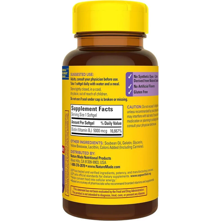 Biotina Max Potencia Nature Made 5000 Mcg Para Cabello Saludable