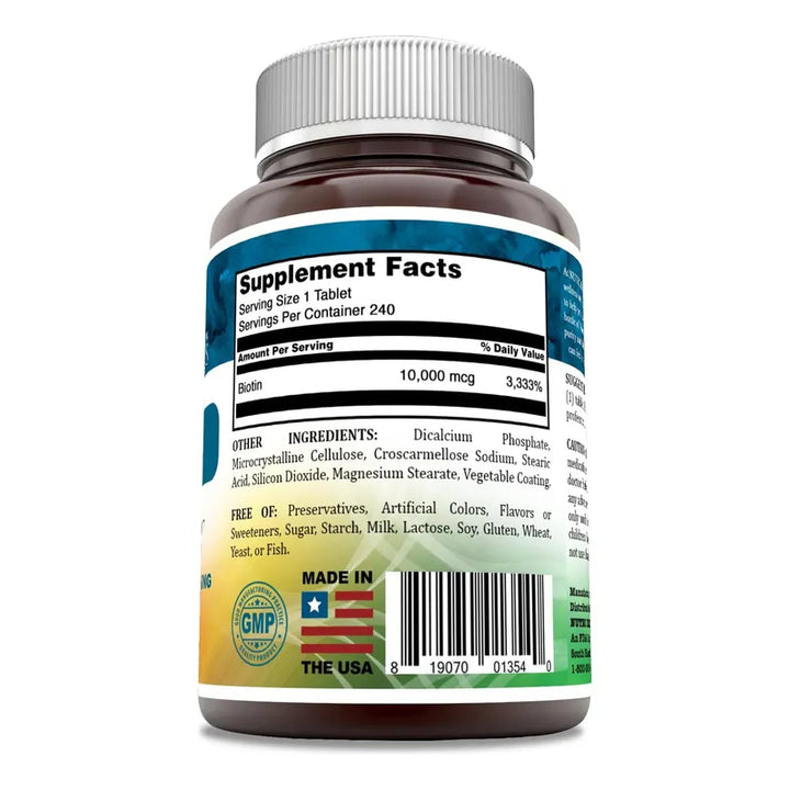Biotina Nutri Essentials 10000 Mcg 240 Tabletas Para Pelo Piel Y Uñas