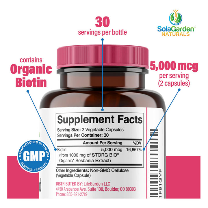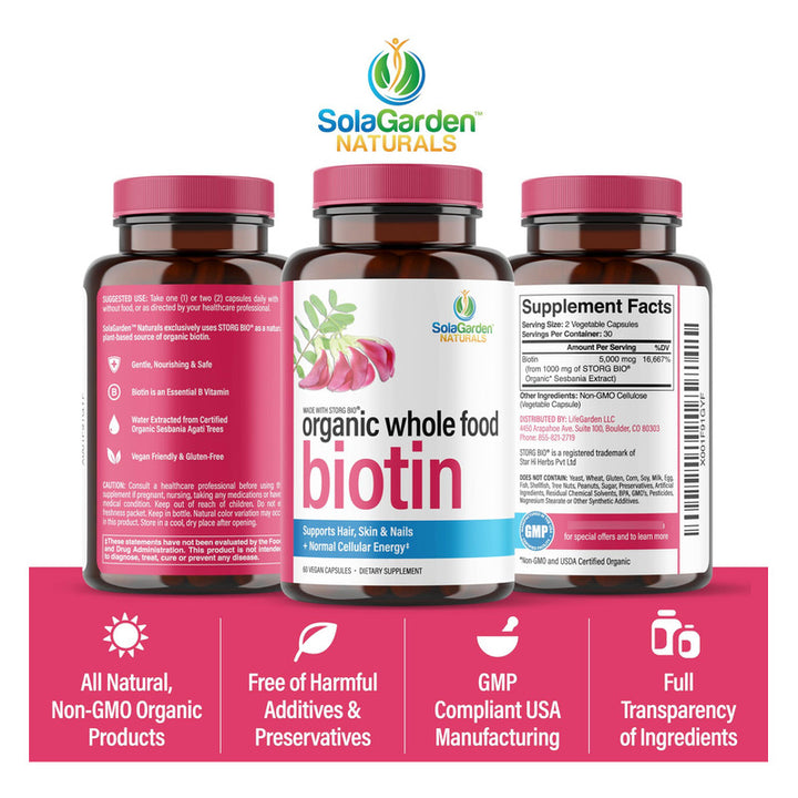 Biotina Organica SolaGarden Naturals Suplemento Cabello Piel Uñas