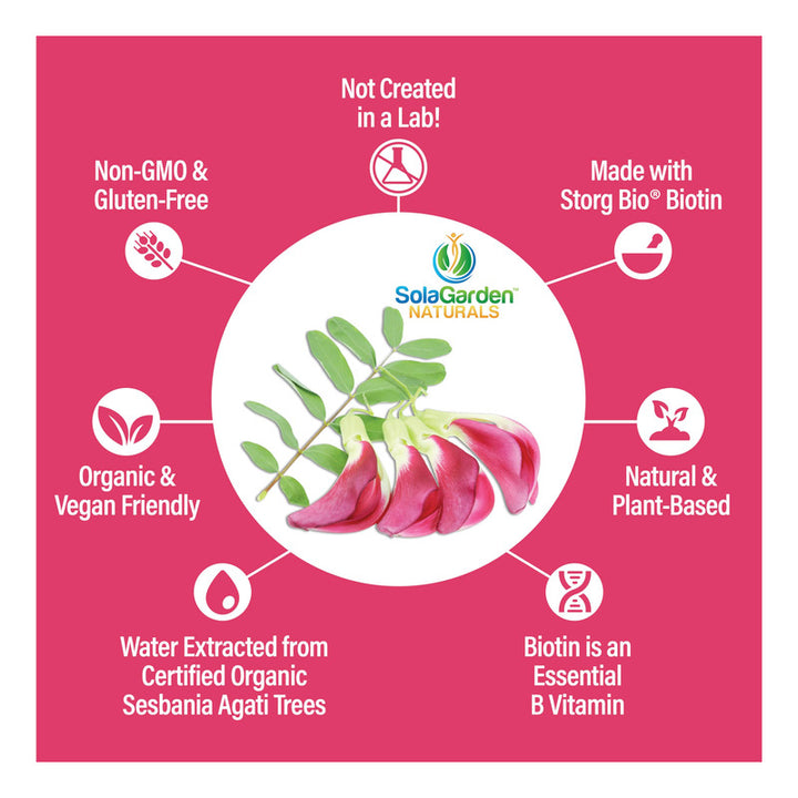 ¿Cansado de gastar tiempo y dinero en productos que no ofrecen resultados visibles? La Biotina Integral de SolaGarden Naturals es la solución que estabas buscando. Imagina poder revitalizar tu cabello, fortalecer tus uñas y rejuvenecer tu piel con un suplemento totalmente natural que respalda tu salud desde adentro.