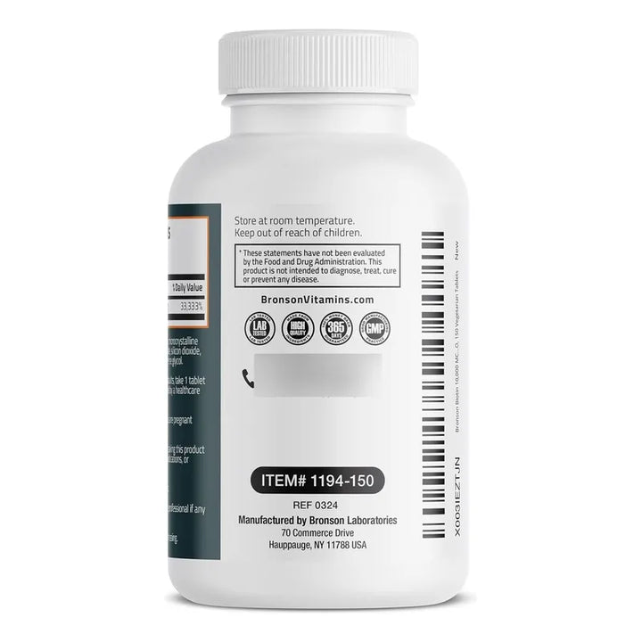 No es solo un suplemento, es un aliado en tu camino hacia la salud y el bienestar. La biotina de alta potencia no solo respalda la salud de tu cabello, piel y uñas, sino que también fomenta la producción de energía, dándote ese impulso necesario para enfrentar el día con vitalidad. Esta fórmula probada en laboratorio garantiza pureza y efectividad, prometiéndote resultados visibles gracias a su alta calidad y fuerza concentrada que solo un líder en vitaminas como Bronson puede ofrecer.