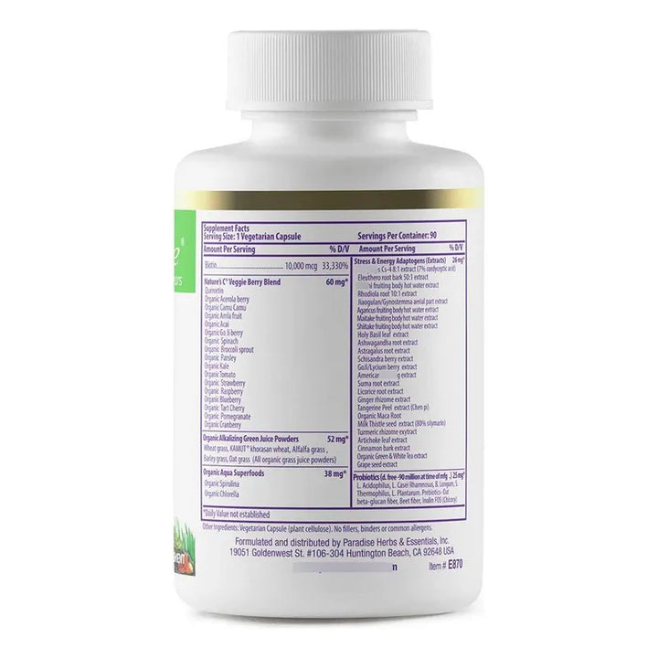 Nuestro suplemento es vegano, sin OMG y sin gluten, lo que garantiza que estás obteniendo solo lo mejor para tu cuerpo. Con hierbas y superalimentos bioactivos de espectro completo, el suplemento de biotina Earths Blend es tu respuesta a una mejora visible en tu salud y bienestar.