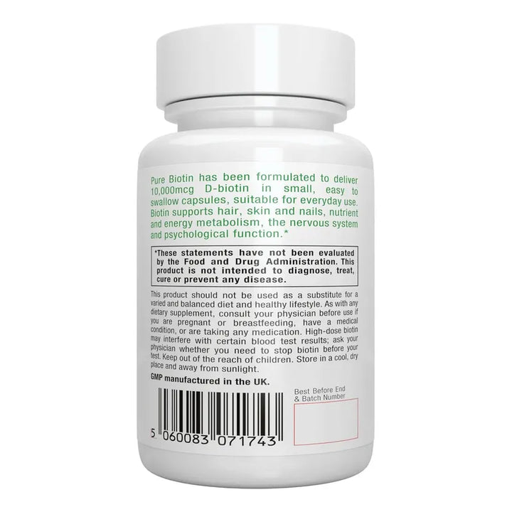 Biotina Pura 10000 Mcg Cápsulas Para Piel Cabello Y Uñas Fuertes