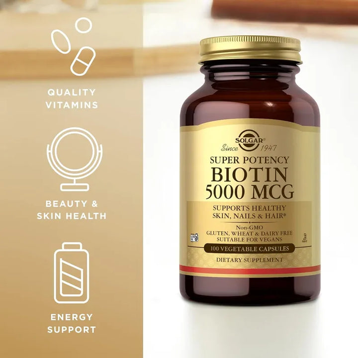 Biotina Solgar 5000 Mcg Cápsulas Para Piel Uñas Y Cabello Saludables