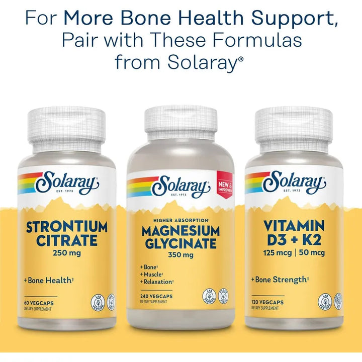 Solaray une el poder del calcio con la eficiencia de la vitamina D3, para asegurar que tu cuerpo pueda utilizar cada miligramo de la manera más efectiva. Imagínate viviendo sin preocupaciones, sabiendo que te has proporcionado a ti mismo un soporte inquebrantable.