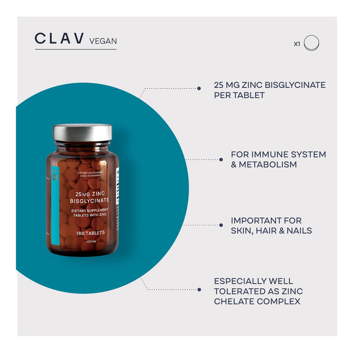 Nuestras tabletas de bisglicinato de zinc de 25 mg están diseñadas para ofrecerte la máxima biodisponibilidad. Experimenta cómo una pequeña y fácil de tragar tabletita puede marcar una gran diferencia, contribuyendo a una piel más sana y un sistema inmunológico robusto. No solo eso, sino que te damos la confianza de estar eligiendo un producto vegano de la más alta calidad, cuidadosamente formulado para satisfacer tus necesidades diarias.