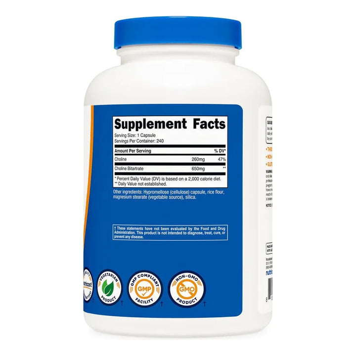Bitartrato De Colina 650 Mg 240 Cápsulas Vegetales Nutricost