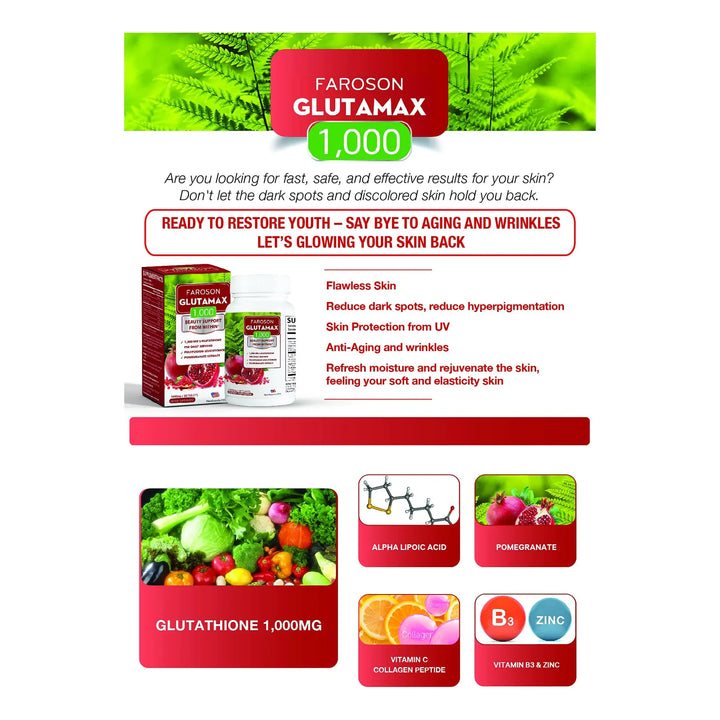 ¿Sueñas con una piel radiante, libre de manchas y signos de envejecimiento? Imagina despertar cada mañana con un cutis luminoso, suave y rejuvenecido. El Blanqueamiento Facial Antioxidante Glutatión 1000 Mg es tu aliado perfecto para lograrlo. Este poderoso suplemento no solo ilumina tu piel desde dentro, sino que también combate los radicales libres, esos enemigos invisibles que aceleran el envejecimiento. ¿No sería maravilloso sentirte segura de tu piel todos los días?