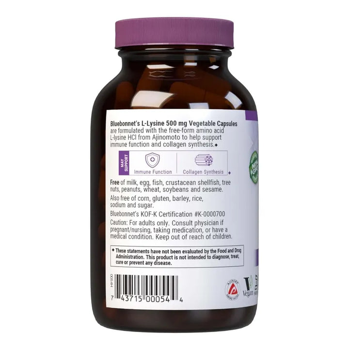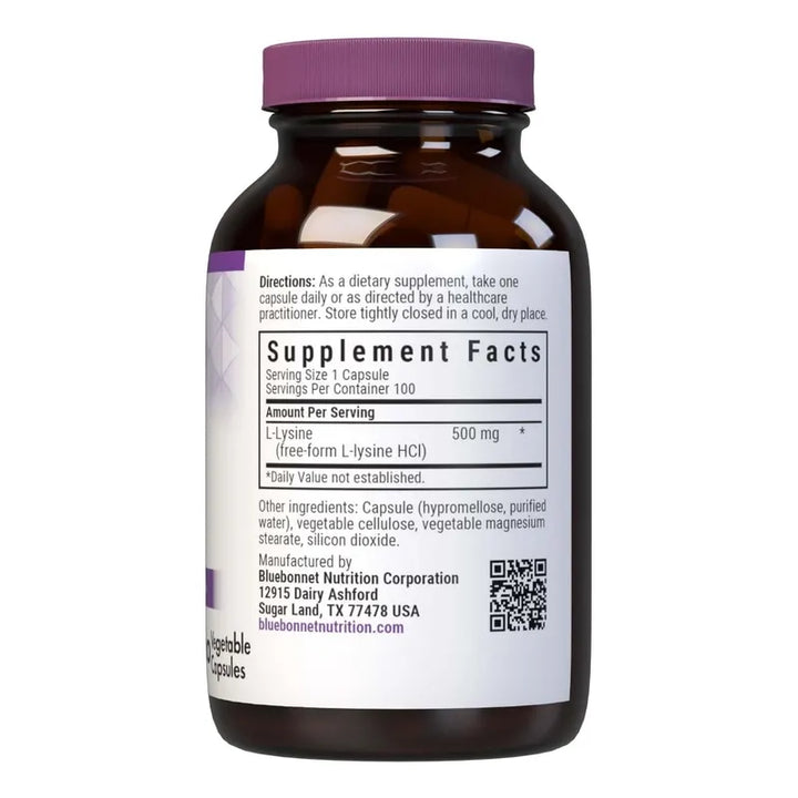 Bluebonnet L-lisina 500 Mg Para Inmunidad Y Colágeno 100 Cápsulas