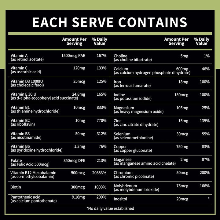 3. 27 nutrientes esenciales: Todo lo que tu cuerpo necesita en una sola tableta. 🌟