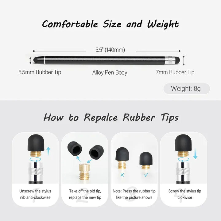 Nuestros bolígrafos capacitivos no son solo herramientas tecnológicas; son una extensión de tu creatividad y productividad. Con un diseño 2 en 1 y puntas de goma antiarañazos de diferentes tamaños, ofrecemos una versatilidad que se adapta a tus necesidades únicas. Dibuja con confianza, toma notas que realmente se entiende y juega sin interrupciones. Una experiencia digital sin complicaciones está a un clic de distancia.