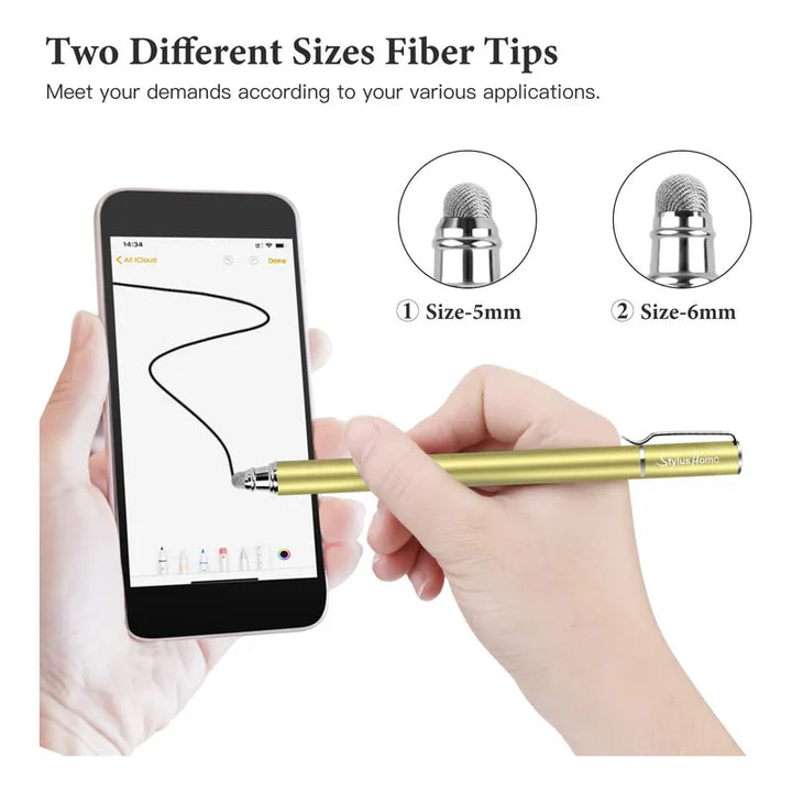 Estos bolígrafos capacitivos 2 en 1 han sido diseñados para revolucionar la forma en que interactúas con tus dispositivos. Con puntas de fibra de dos tamaños en cada extremo, tendrás la flexibilidad de elegir cómo quieres disfrutar de tu experiencia digital.