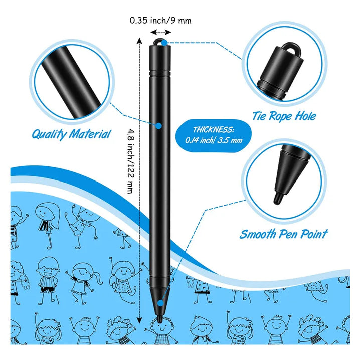 Acerca del funcionamiento: En lugar de tinta o pólvora, estos bolígrafos operan bajo la presión ejercida sobre el tablero de dibujo LCD, permitiéndote manifestar tus ideas con naturalidad. Para utilizarlos de manera óptima, asegúrate de insertarlo en la ranura del tablero si la posee. Paso a paso: