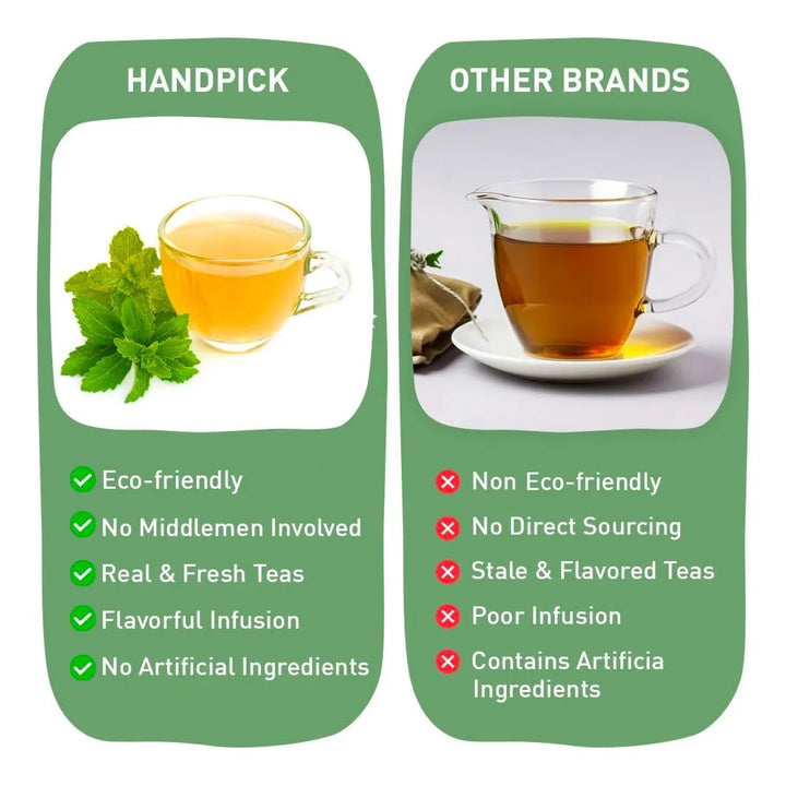 ¿Estás buscando una alternativa saludable a las bebidas con cafeína? Nuestro té de hierbas es 100% libre de cafeína, gluten y OMG, lo que lo convierte en la opción perfecta para aquellos que desean cuidar su salud sin sacrificar el sabor. Además, al elegir Handpick, no solo estás eligiendo calidad, sino también un compromiso con el planeta. Somos una marca carbono neutro y plástico neutro, lo que significa que cada taza que disfrutas contribuye a un futuro más sostenible.