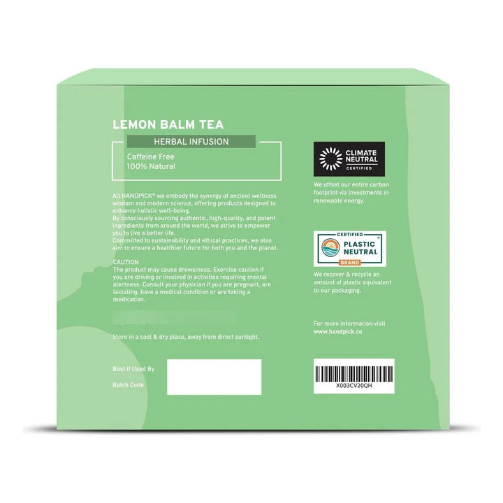 Imagina comenzar tu día con una taza de té que no solo despierta tus sentidos, sino que también nutre tu cuerpo y alma. Nuestras bolsas de té de bálsamo de limón Handpick están diseñadas para ofrecerte una experiencia única, llena de sabores cítricos vibrantes y aromas que te transportarán a un estado de calma y bienestar. Cada sorbo es una invitación a disfrutar de lo mejor que la naturaleza tiene para ofrecer, sin preocuparte por ingredientes artificiales o aditivos dañinos.