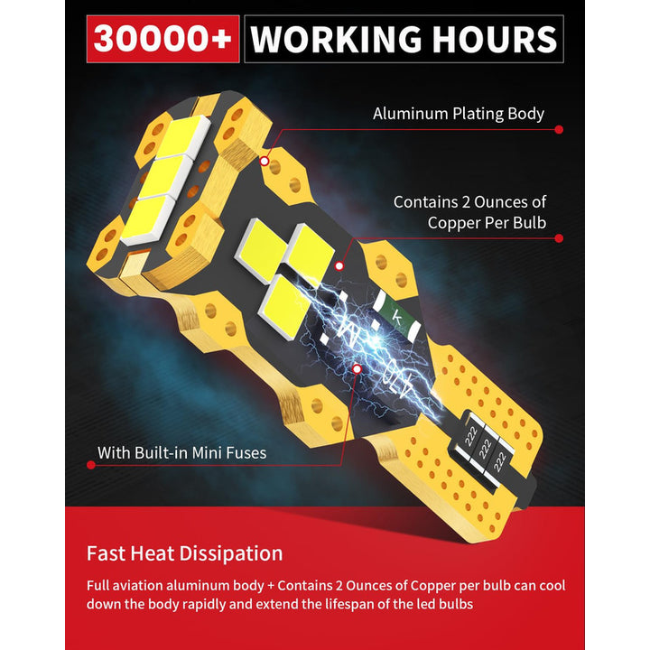 Y eso no es todo. Cada bombilla viene con un diseño único de tres puntos luminosos, replicando el patrón de haz de las halógenas tradicionales, pero con la eficiencia y durabilidad de la tecnología LED. Con 30,000 horas de vida útil, te olvidas del cambio constante de bombillas.