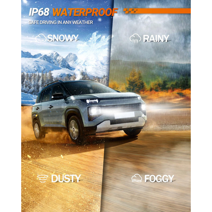 Con la tecnología IP68 de impermeabilidad, no hay lluvia, niebla o tormenta que detenga tu vista clara del camino. No es solo una luz, es un escudo contra el clima.