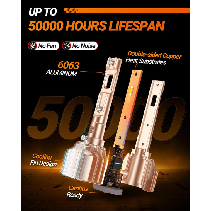 Con una capacidad de 10,000 lúmenes, estas bombillas proporcionan un 600% más de brillo que las bombillas halógenas tradicionales. Cada pieza de la tecnología esculpida en estas luces ha sido diseñada pensando en tu seguridad y comodidad.