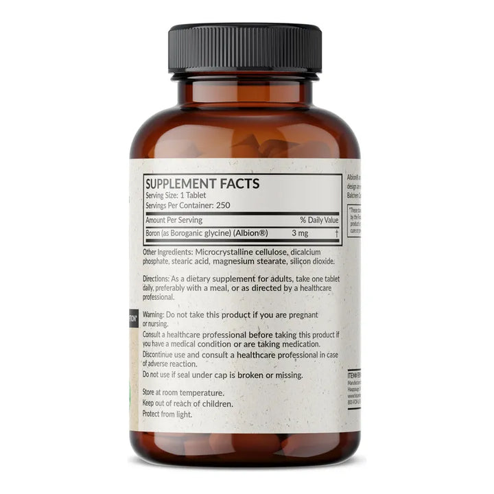Boro Quelado 3 Mg 250 Tabletas Veganas Para Huesos Fuertes