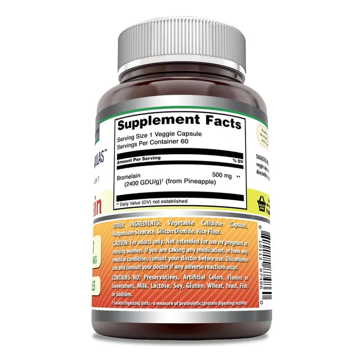 Bromelina 500mg 2400 GDU Cápsulas Vegetarianas Para Digestión Mejorada