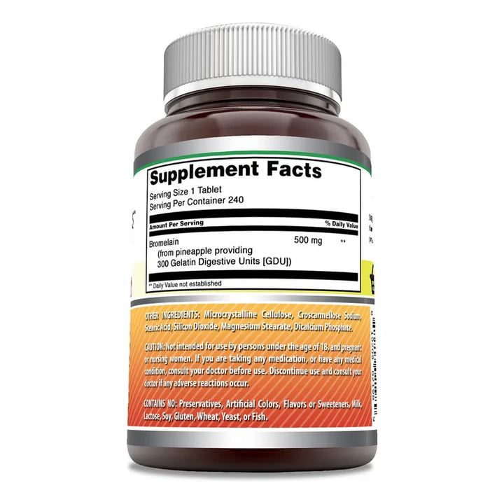 Bromelina Amazing Formulas 500 Mg Sin Glúten 240 Tabletas