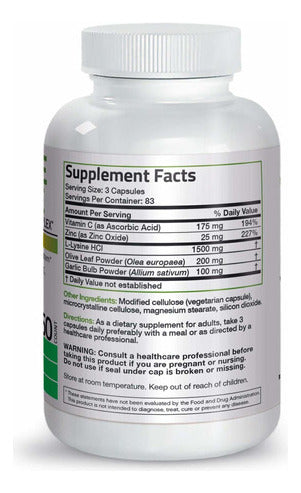 - Refuerza tu sistema inmunológico 💪: La combinación de L-lisina, ajo, hoja de olivo, vitamina C y zinc te ayuda a mantener un sistema inmunológico fuerte y preparado para cualquier desafío.