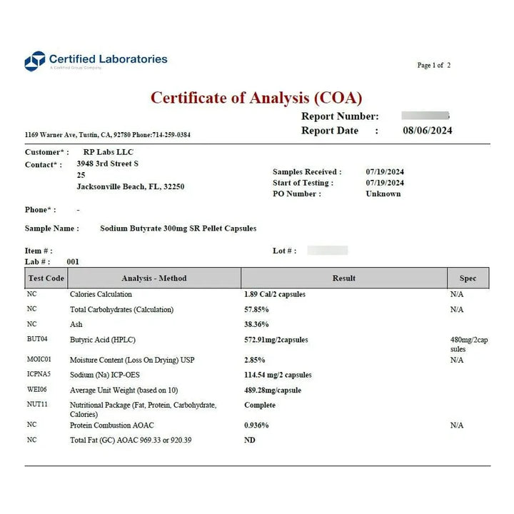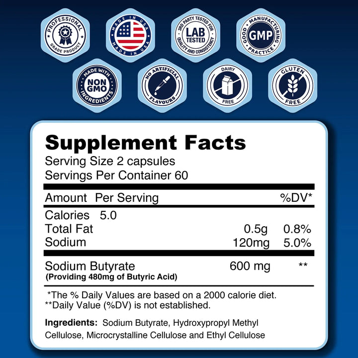 Butirato De Sodio 120 Cápsulas 300 Mg Liberación Prolongada