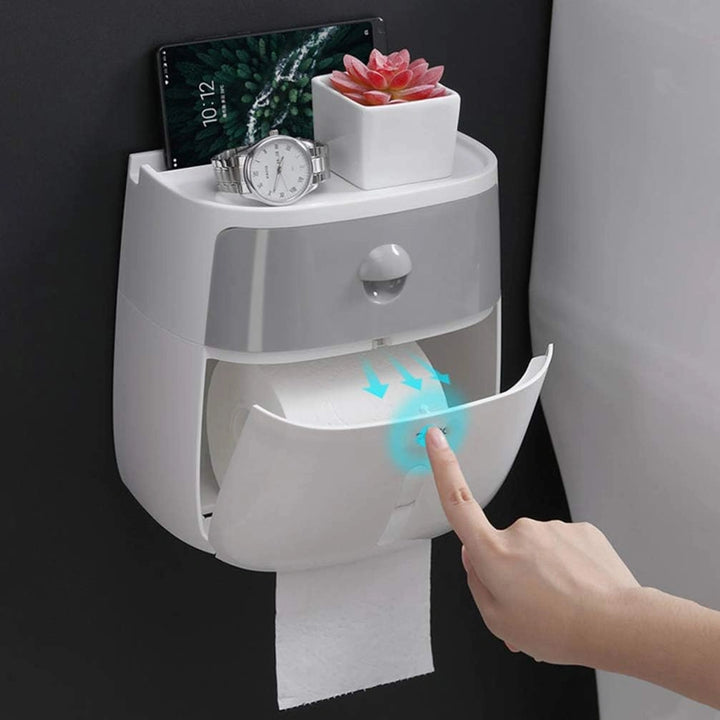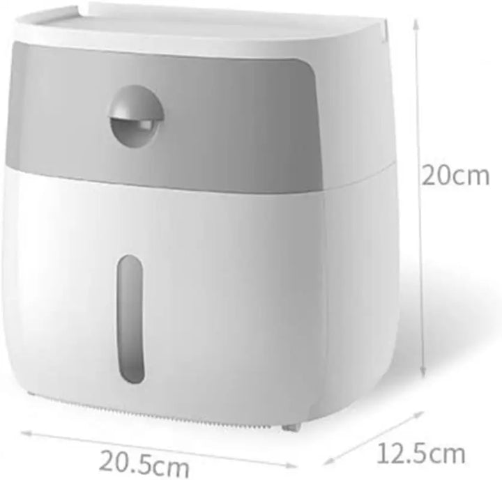 Este dispensador de Cabilock está diseñado para maximizar el orden y la comodidad. Su estructura cuenta con dos niveles: la capa superior tiene un cajón ideal para artículos personales, mientras que la inferior está destinada a guardar y dispensar papel de distintas formas (rollo, pañuelos, toallas, etc.). Gracias a su ventana visible y a los agujeros huecos, puedes verificar fácilmente cuándo es momento de reponer papel.